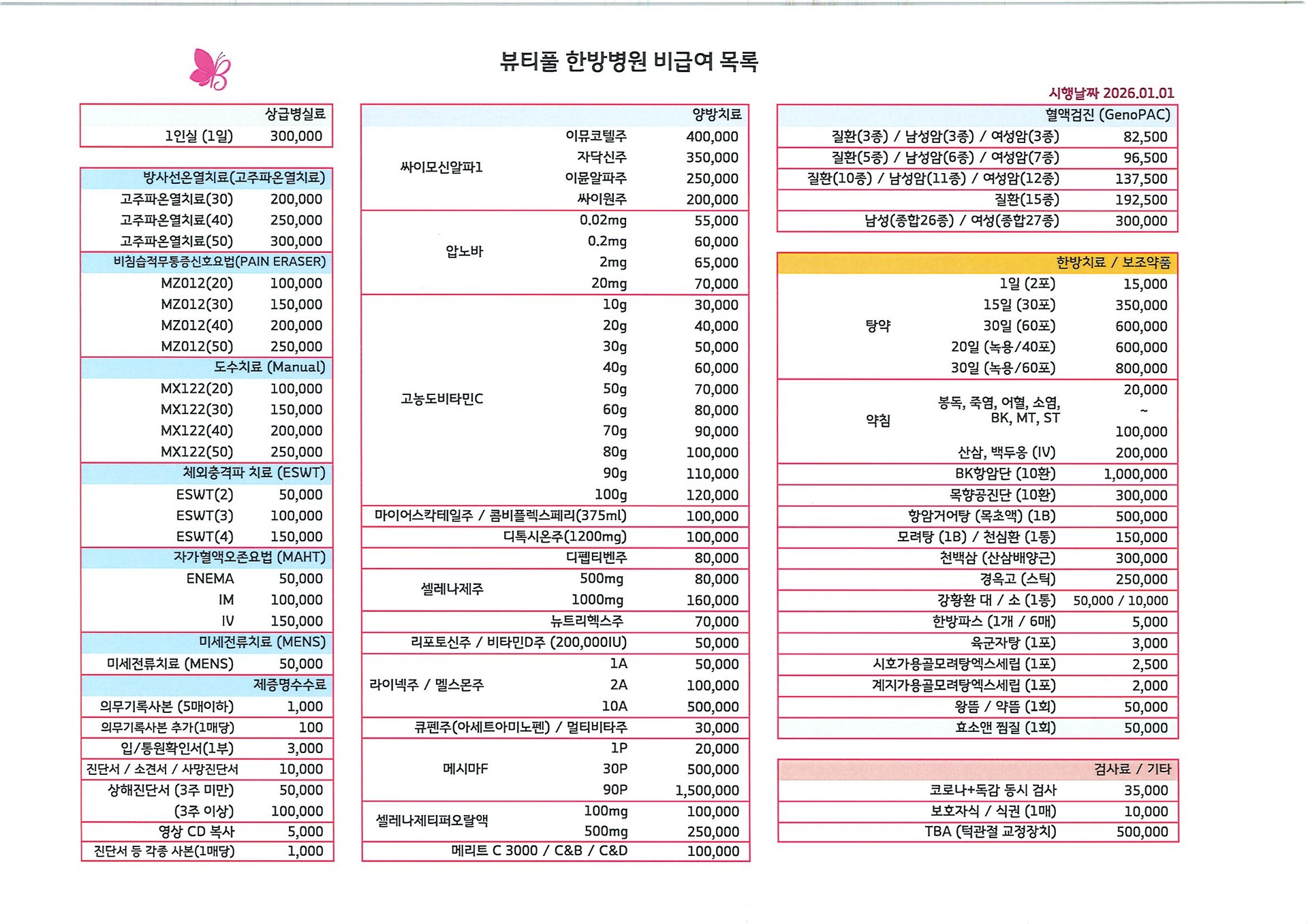 비급여항목 안내